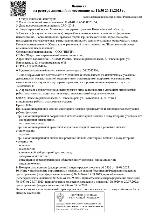 Точность ДНК-теста, который вы можете приобрести в нашем центре «ДТЛ» в Электростали, крайне высока и достигает 99,99999%, благодаря использованию передовых методов анализа и диагностического оборудования в ДНК-лабораторий-партнёров.